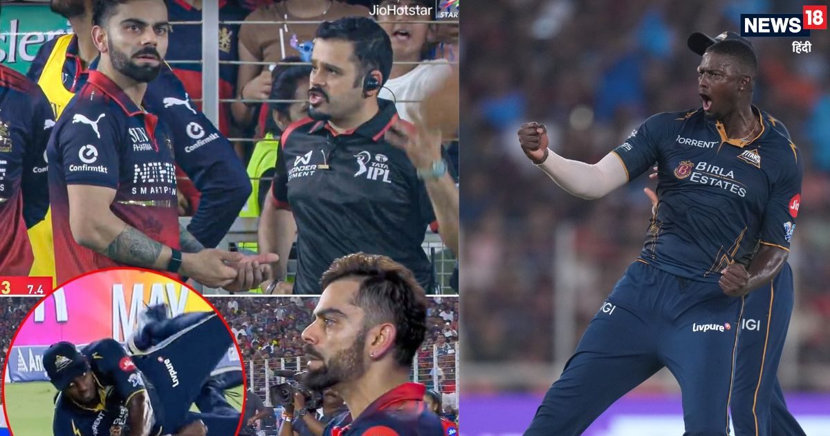 दरअसल, बवाल आठवें ओवर की चौथी गेंद पर मचा, जब बाएं हाथ के तेज गेंदबाज अरशद खान ने पटकी हुई गेंद फेंकी. इस पर आरसीबी के कप्तान रजत पाटीदार ने बड़ा शॉट खेलने की कोशिश की, लेकिन गेंद बल्ले के ऊपरी हिस्से से टकराकर हवा में काफी ऊपर चली गई. तभी डीप स्क्वायर लेग से जेसन होल्डर और दूसरी तरफ से कागिसो रबाडा, दोनों गेंद की तरफ दौड़े. वेस्टइंडीज के स्टार खिलाड़ी होल्डर ने सूझबूझ दिखाई और रबाडा से टकराने से बचते हुए जमीन के करीब एक बेहतरीन कैच लपक लिया. इसके साथ ही गुजरात के खेमे में खुशी की लहर दौड़ गई. हालांकि, टीवी अंपायर अभिजीत भट्टाचार्य ने रीप्ले देखा और पाटीदार को आउट करार दिया. अंपायर के इस फैसले से पूरा आरसीबी कैंप और उनके फैंस हैरान थे.