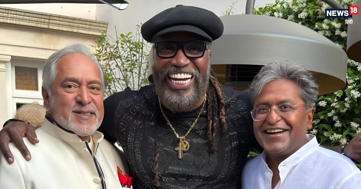 विजय माल्या और ललित मोदी के साथ क्रिस गेल.