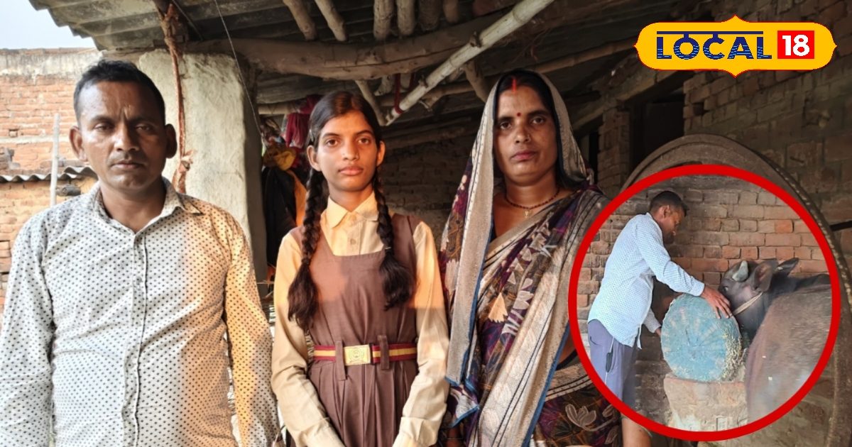 बलिया: ‘काग चेष्टा, बको ध्यानं, स्वान निद्रा तथैव च…’ संस्कृत का यह श्लोक जानवरों की खूबियों का उदाहरण देते हुए होनहार विद्यार्थियों के लिए रचा गया है और यह श्लोक हाईस्कूल की एक छात्रा पर बिल्कुल सटीक बैठता है. मशीन से पशुओं के लिए चारा काटती इस लड़की को देखकर आप किसी मुगालते में मत रहिएगा कि यह कोई बाल श्रमिक है, बल्कि परिवार की गरीबी उसे पढ़ाई के साथ-साथ खेती-बाड़ी के काम और पशुओं के चारे की व्यवस्था करने के लिए मजबूर करती है.