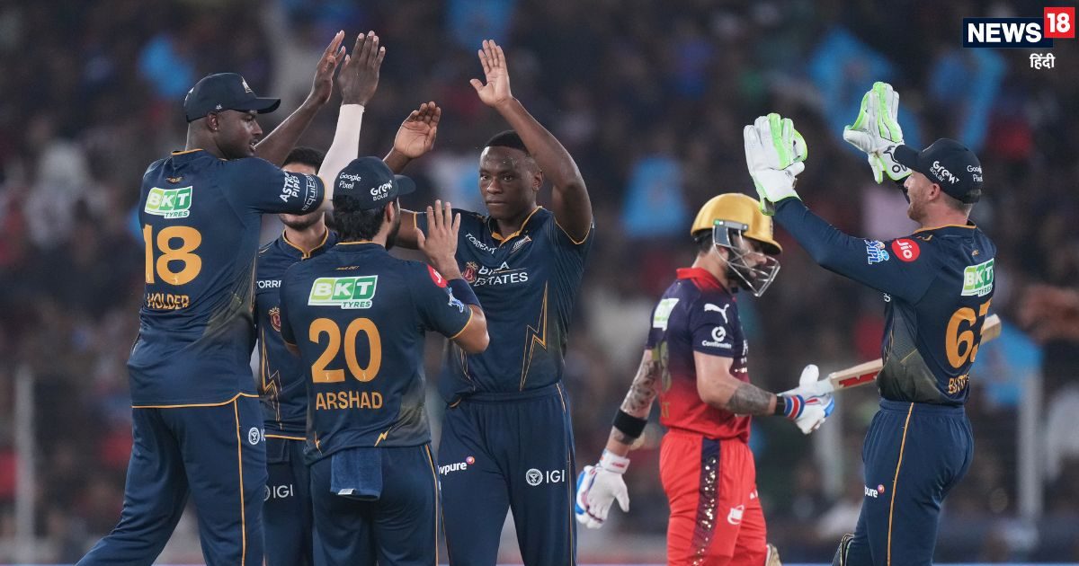 नई दिल्ली. आईपीएल 2026 के 42वें मुकाबले में गुजरात टाइटंस ने रॉयल चैलेंजर्स बेंगलुरु को 4 विकेट से शिकस्त देकर सीजन की 5वीं जीत दर्ज की. नरेंद्र मोदी स्टेडियम में पहले गुजरात के गेंदबाज आरसीबी पर कहर बनकर टूटे और फिर जोस बटलर और शुभमन गिल की तूफानी पारियों ने टीम के लिए जीत की राह आसान कर दी. आरसीबी की टीम आईपीएल 2026 में पहली बार ऑलआउट हुई. गुजरात ने 19.2 ओवर में ही बेंगलुरु को 155 रन पर ढेर कर किया. इसके बाद गुजरात ने 15.5 ओवर में ही 158 रन बनाकर लक्ष्य हासिल कर लिया. गुजरात की यह 5वीं जीत है, जिससे टीम ने 5वें स्थान पर अपनी स्थिति मजबूत कर ली है. वहीं, आरसीबी की तीसरी हार का सामना करना पड़ा. आरसीबी अगर यह मुकाबला जीत जाती तो वो पॉइंट्स टेबल में पंजाब किंग्स को पछाड़कर नंबर-1 बन जाती है. हालांकि, हार के साथ आरसीबी दूसरे स्थान पर ही बनी हुई है.