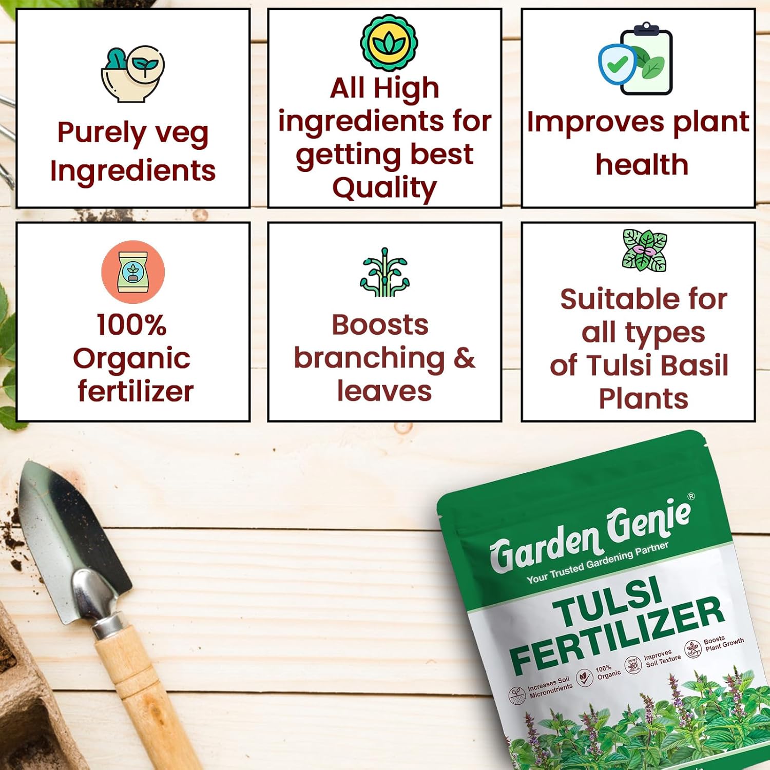 Specially Formulated for Tulsi Plants – Boost the health and growth of your Holy Basil with this nutrient-rich fertilizer, tailored to meet the unique needs of Tulsi for vibrant leaves and a stronger aroma.