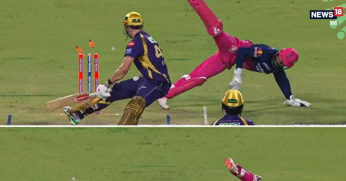 नई दिल्ली: राजस्थान रॉयल्स के विकेटकीपर ध्रुव जुरेल ने कैमरून ग्रीन को स्टंप आउट कर सनसनी मचा दी. केकेआर के खिलाफ मुकाबले में रवि बिश्नोई की गेंद पर जुरेल ने ये कमाल किया. बिश्नोई के खिलाफ ग्रीन आगे निकलकर एक बड़ा शॉट लगाने की कोशिश कर रहे थे, लेकिन राजस्थान के गेंदबाज ने इसे भांप लिया. ऐसे में फिर क्या था रवि बिश्नोई ने गेंद की लाइन बदल दी. बिश्नोई ने गेंद को लेग साइड की लाइन पर डाली. पिच होने के बाद गेंद अपना रास्ता बदला और लेग साइड में काफी वाइड चली गई.