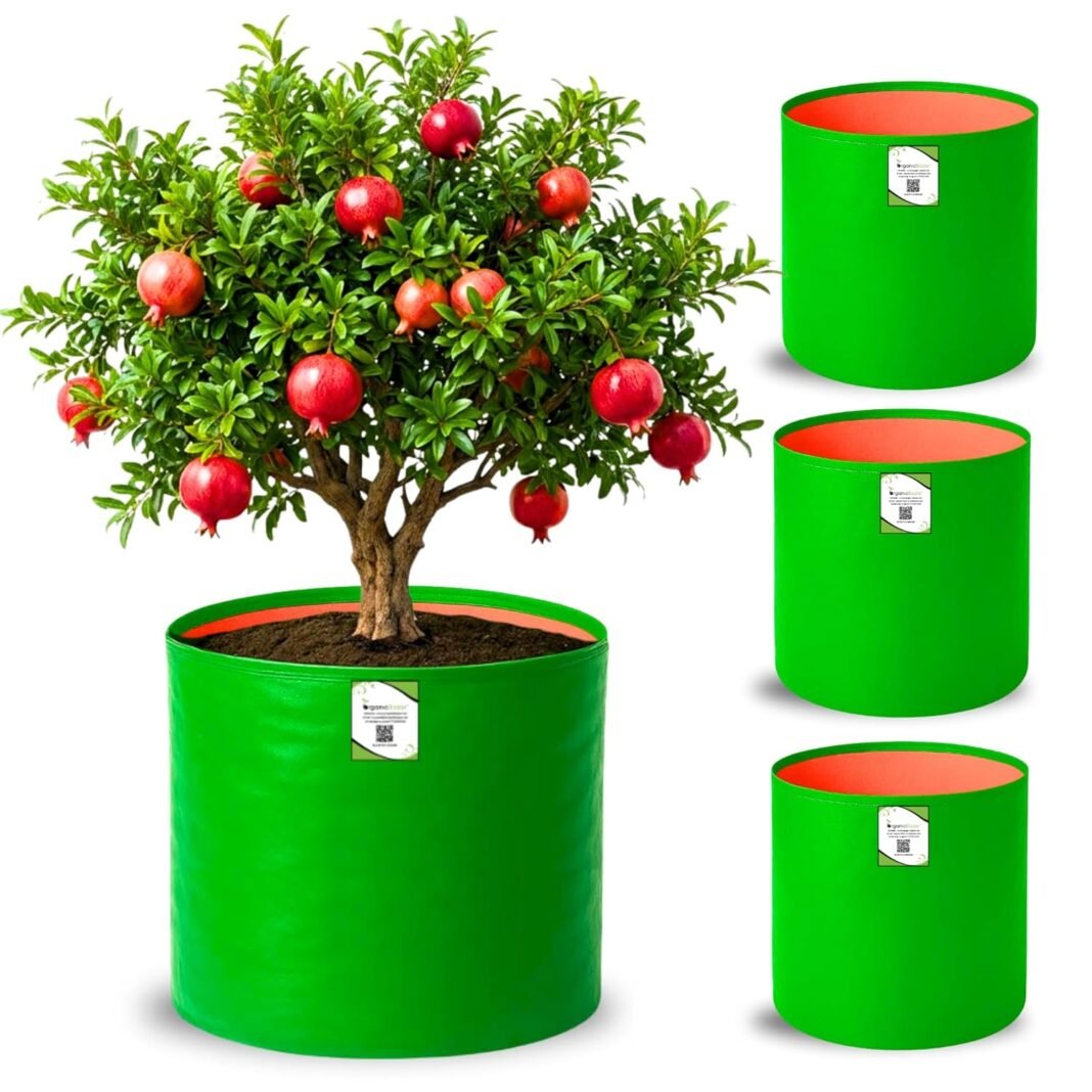 Product Dimension: Height: 18 inch (46cm), Diameter: 18inch (46cm) | Premium HDPE 220 GSM Grow Bags | Green & Orange Color Planter for Fruit Tree (Pack Of 4)
