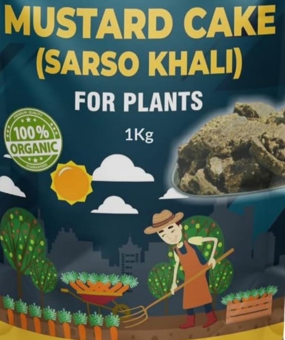 Organic Gardening Mustard Oil Cake (Sarso Khali) Organic Essential Fertilizer for Home Garden, Potting Plant Growth & Healthy Root Nutrient (1 KG)