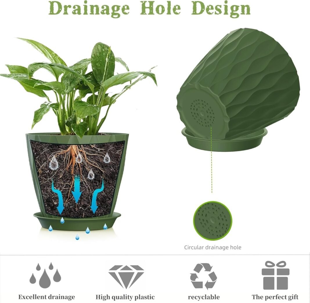 StyleX Store Plastic 6.2 inch Plant Pots with Drainage Holes and Tray Saucers | Flower Pots for Home Planters, Terrace, Balcony Dcor, Home Indoor and Outdoor Gardening Plants, Pack of 5 (Green)