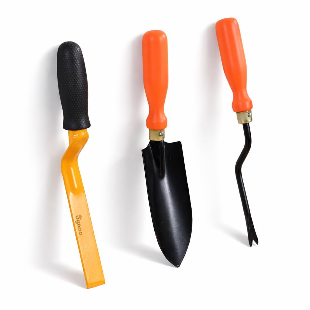 3 Pcs Gardening Tools Set: This gardening kit for home garden includes a hand weeder, hand shovel for gardening, and khurpi, forming a versatile garden tools set ideal for digging, planting, loosening soil, and removing weeds.
